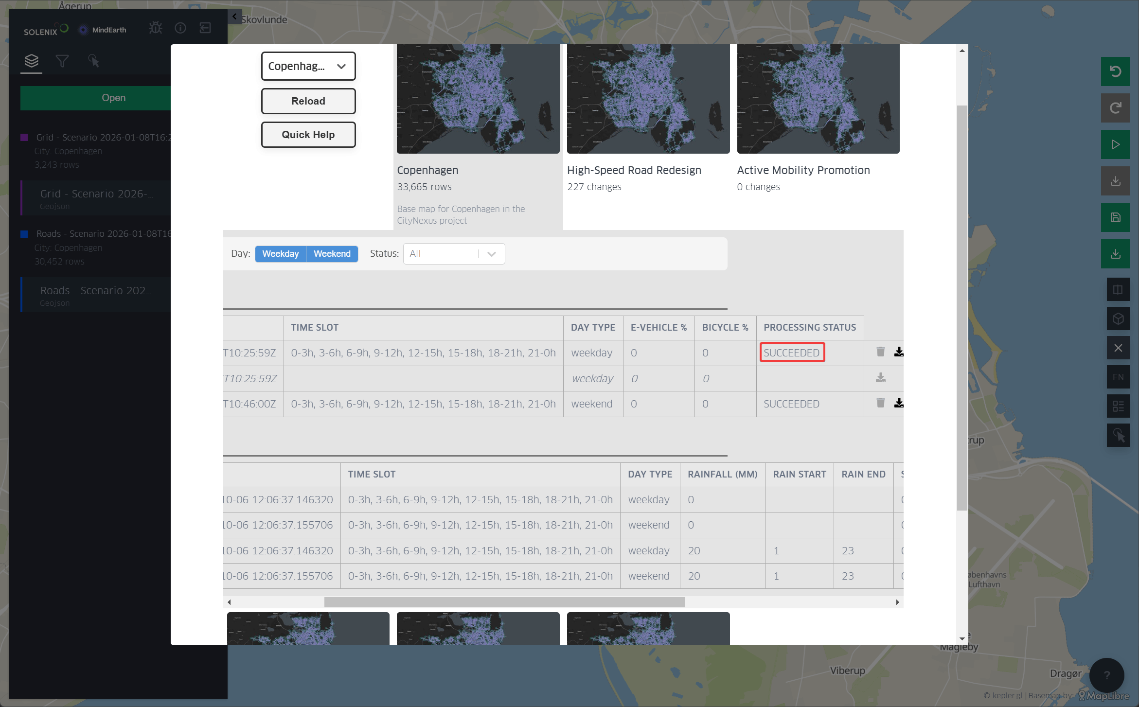 Succeded: The scenario has been simulated and the results are available for visualziation and/or download