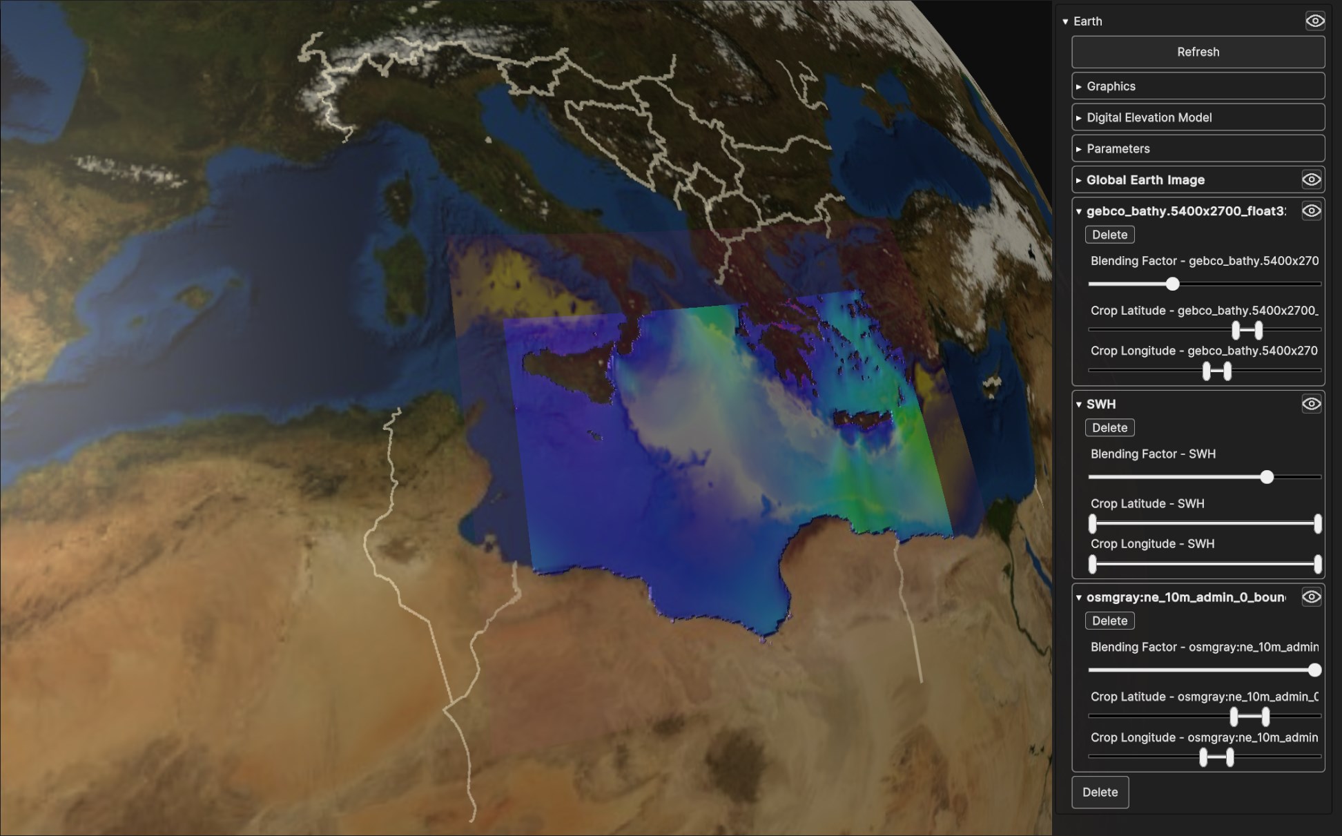 Fig. 5.16 Example of disabled Data Sources and null blending factor: The Global Earth Image Data Source blending factor is set to 0, making it appear as if it were disabled and not rendered.