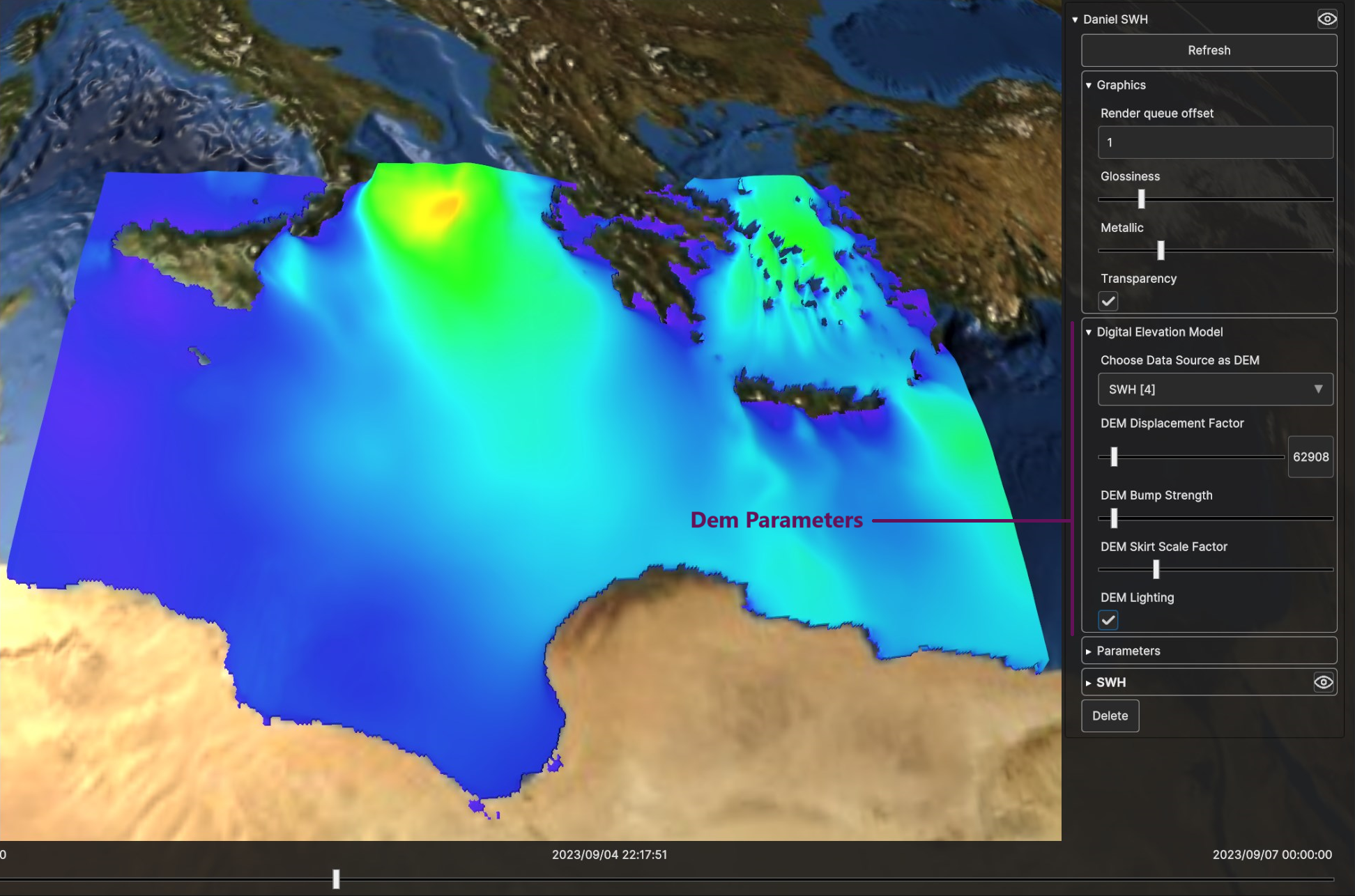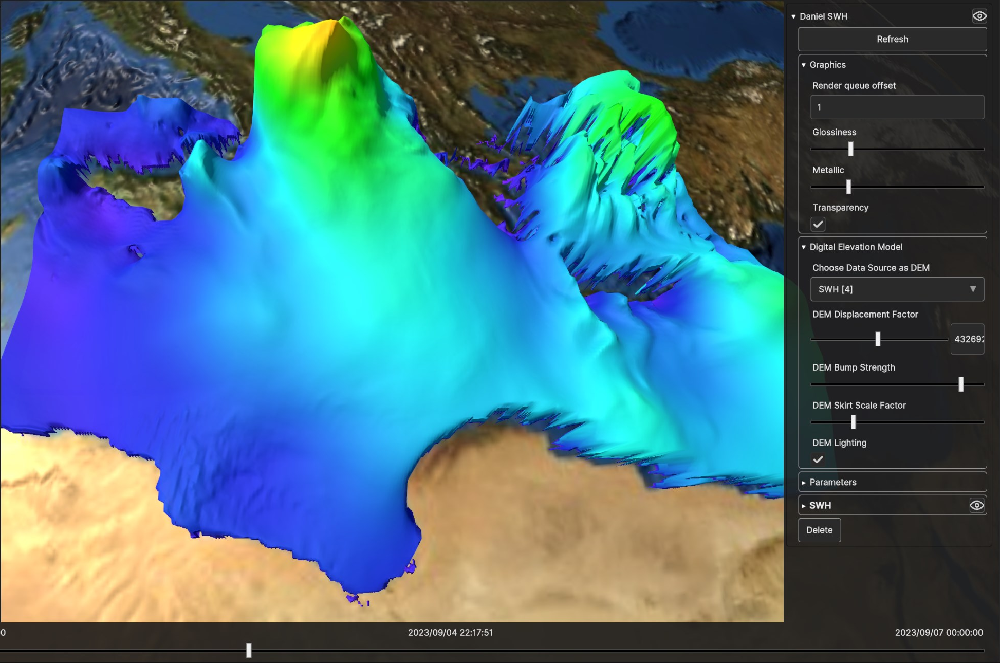 Fig. 5.13 Digital Elevation Model for SWH Data Source, with low bump strength and low displacement