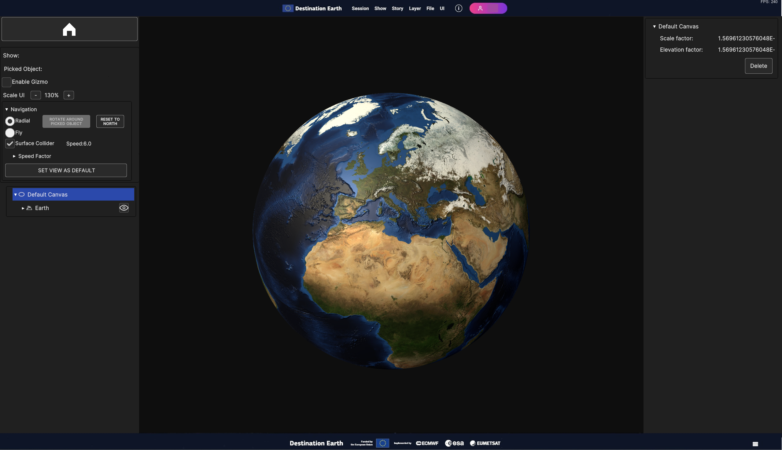 Fig. 5.2 Surface Layer with the static image of the Earth mapped on an Ellipsoidal Canvas (the Default Canvas)