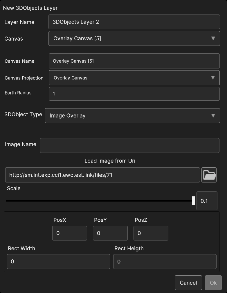 Fig. 5.28 3D Objects Image Overlay data source popup