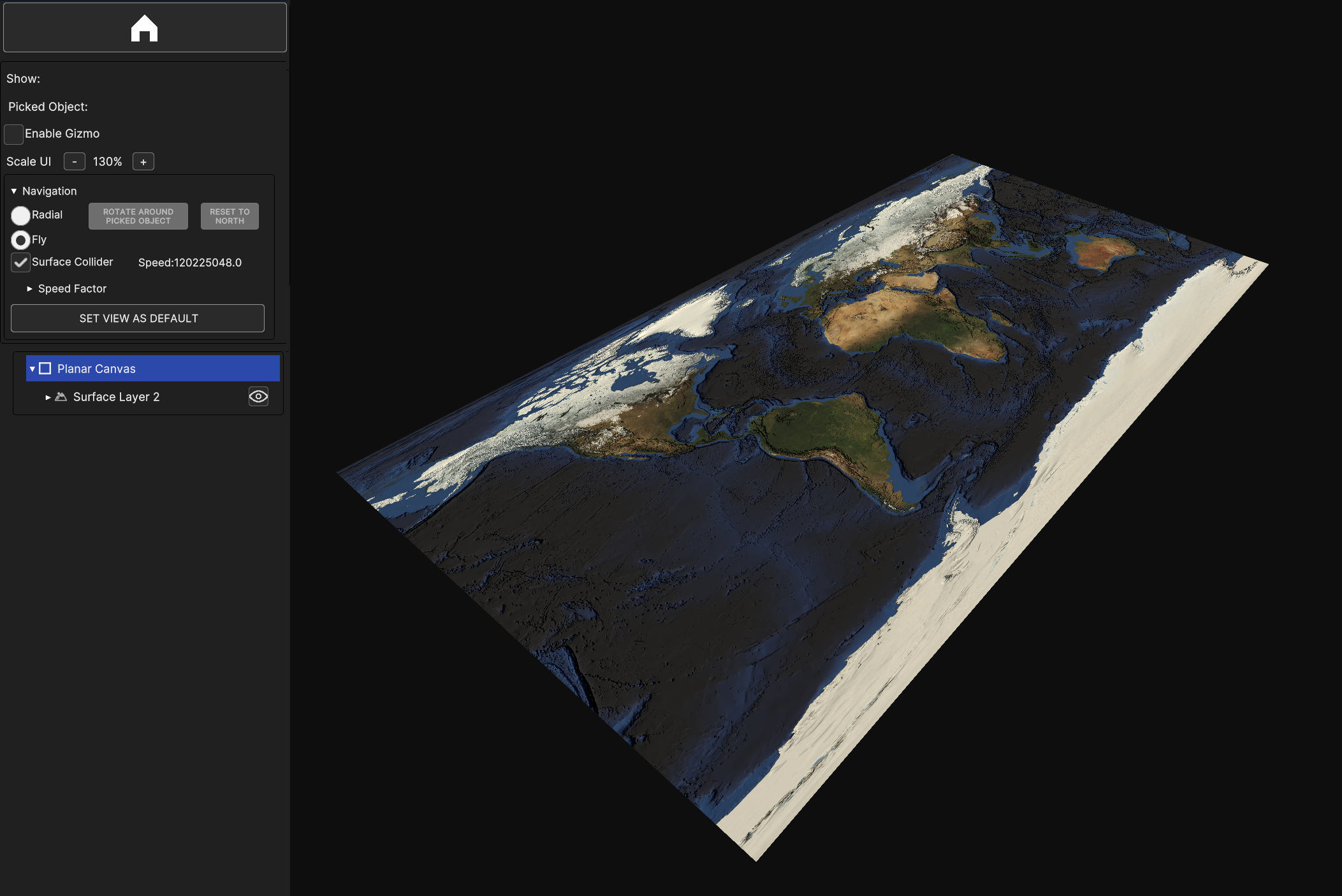 Fig. 5.3 Simple Surface Layer with the static image of the Earth mapped on a Planar Canvas