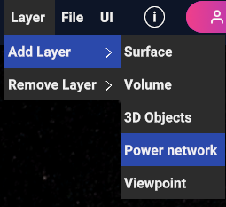 To add a power network layer: “Layer” > “Add Layer” > “Power Network”