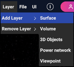 To add a Surface Layer to the current Show, choose Layer > Add Layer > Surface option from the Menu Bar.