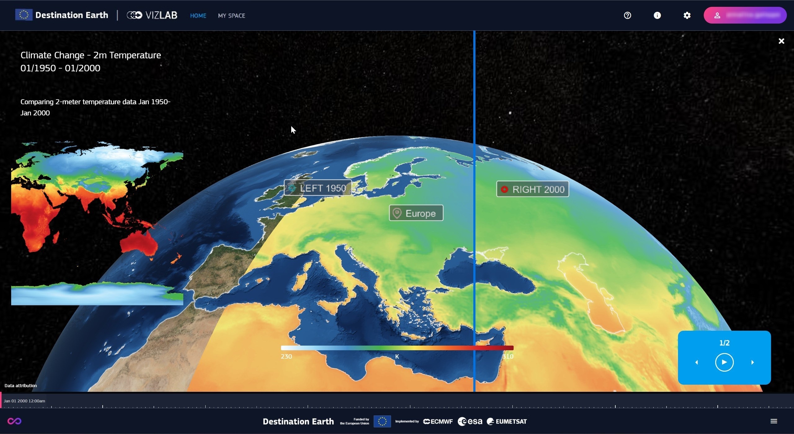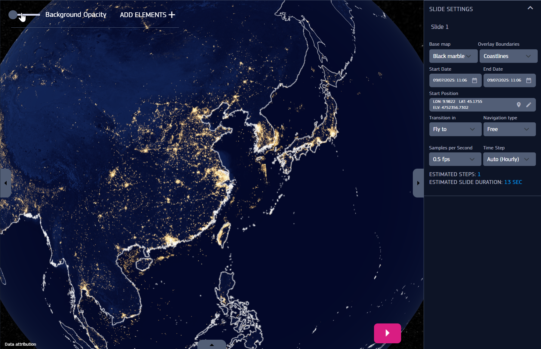 For each slide, Earth appearance can be changed by selecting the Base map, which is the image of the Earth wrapped around the 3D model.