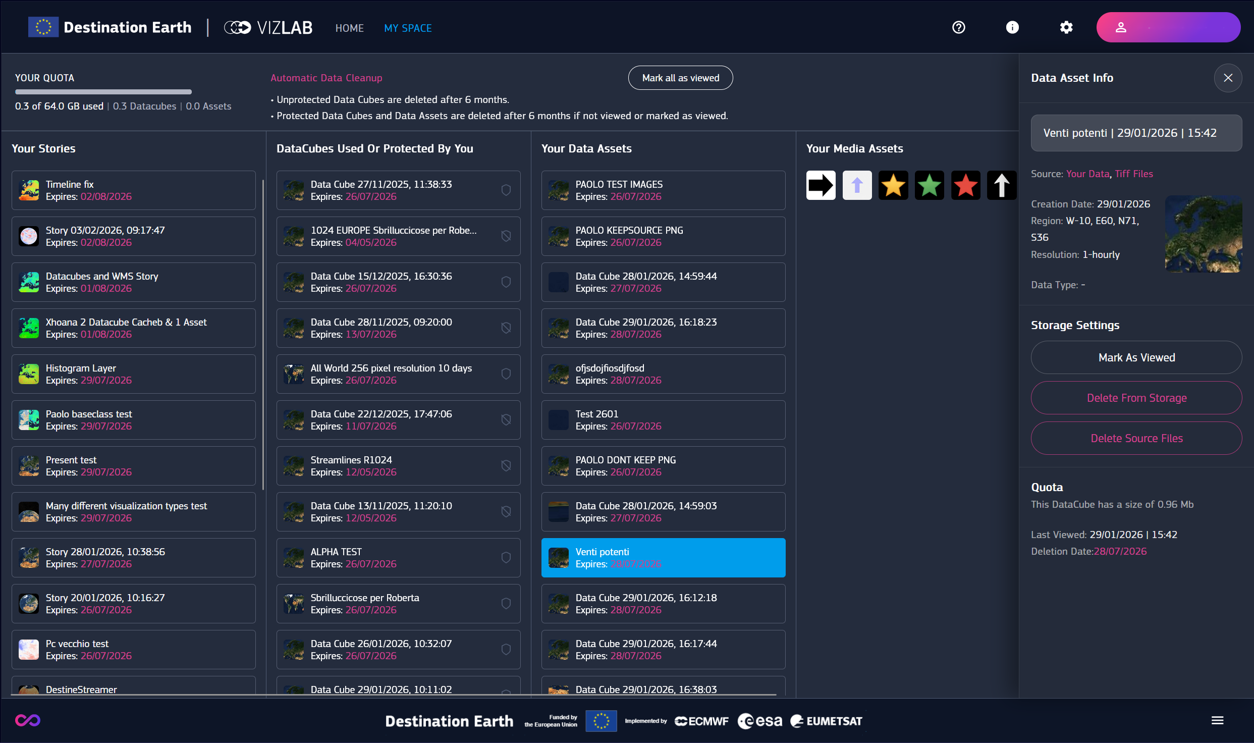 “My Space” is the user’s personal area, containing an overview of the data stored on their account.
